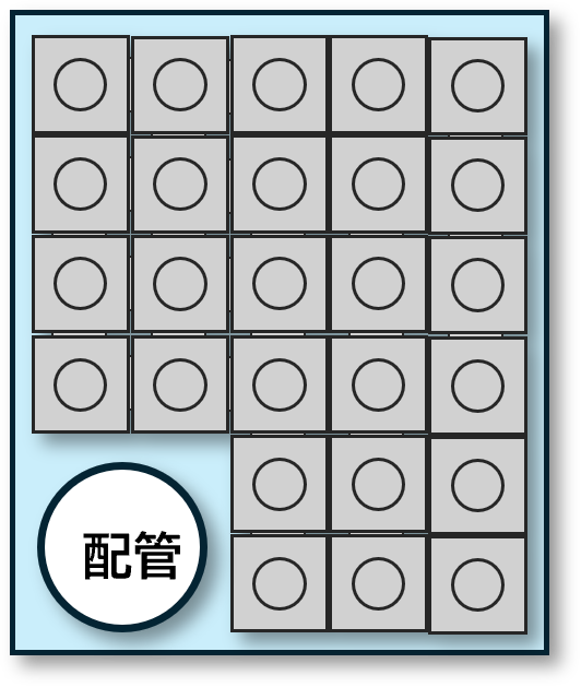 配管などがある場合では、その部分は組み合わせないことで効率的に液面を被覆できます。
