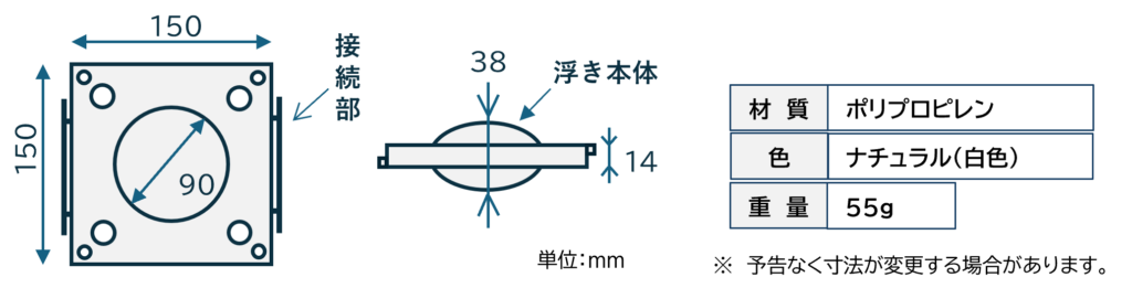 エルコートはそのような声から生まれた液面を被覆する板形状のフロートとなります。
